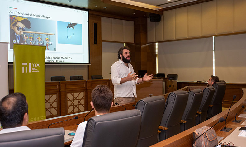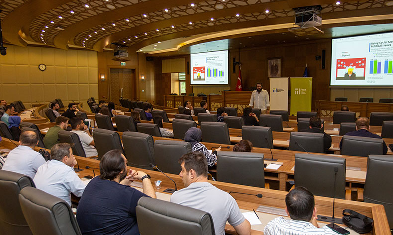 Büyükşehir Belediyesi İnsan Kaynakları ve Eğitim Dairesi Başkanlığına bağlı Eğitim Şube Müdürlüğü tarafından düzenlenen eğitim programı, Belediye Meclis Salonu’nda gerçekleştirildi. Eğitmen Salih Çaktı tarafından ‘Sosyal medya stratejisi, sosyal medya algoritması, sosyal medya reklamcılığı, içerik yönetimi, analiz ve ölçüm, kriz yönetimi, sosyal medya etik kuralları konuları ayrıntılı olarak anlatıldı.