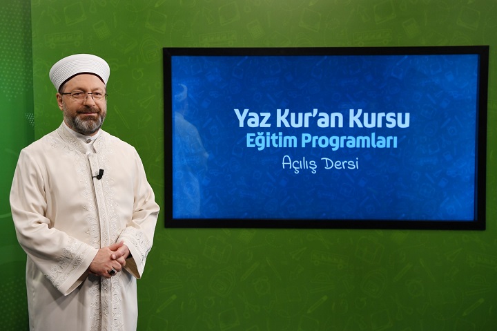 Diyanet İşleri Başkanlığı’ndan yapılan açıklamaya göre, koronavirüs salgınına karşı alınan tedbirler nedeniyle bu yıl Diyanet TV üzerinden uzaktan eğitim yöntemiyle düzenlenen ‘Yaz Kur’an Kursları Eğitim Programları’ bugün Ali Erbaş’ın verdiği açılış dersiyle başladı. Erbaş, yaz Kur’an kurslarının eğitim planını çocukların tatil dönemini dikkate alarak yaptıklarını belirtti. Erbaş, eğitim programının çocukları yoracak bir program olmadığını belirterek, “Onlara Kur’an’ı ve dini değerleri sevdirmek için kitaplar ve eğitim materyallerimiz, motivasyon merkezli bir yaklaşımla, çocuklarımızın seviyesini, ilgisini, beklentisini, yaşını, yeteneğini, bilgisini ve bütün özelliklerini dikkate alarak hazırlanmıştır” dedi.