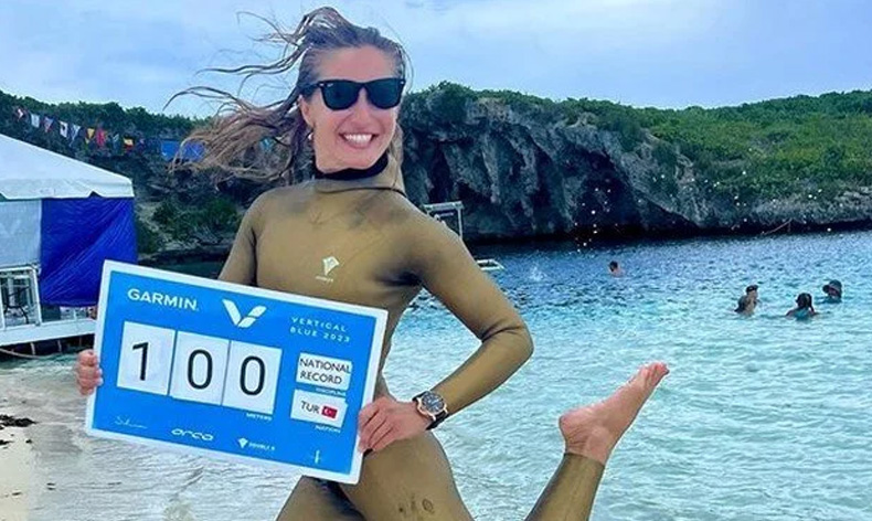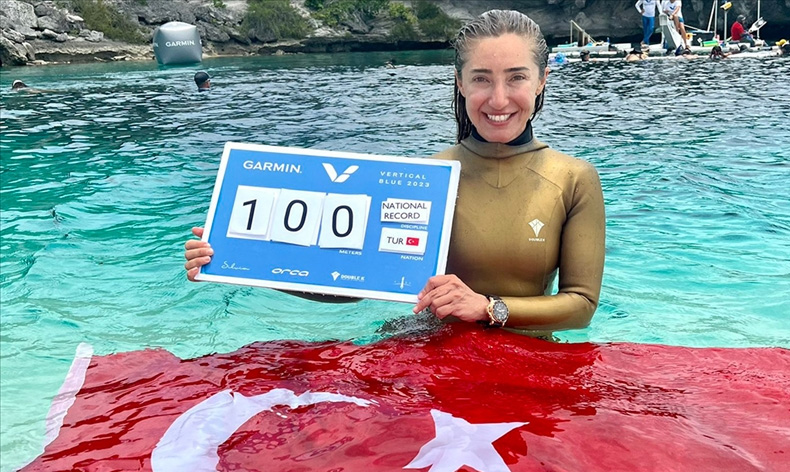 Milli sporcu, Türkiye serbest dalış tarihinde kadınlar ve erkeklerde sabit ağırlıkla 100 metreye inen ilk sporcu unvanını da elde etti.