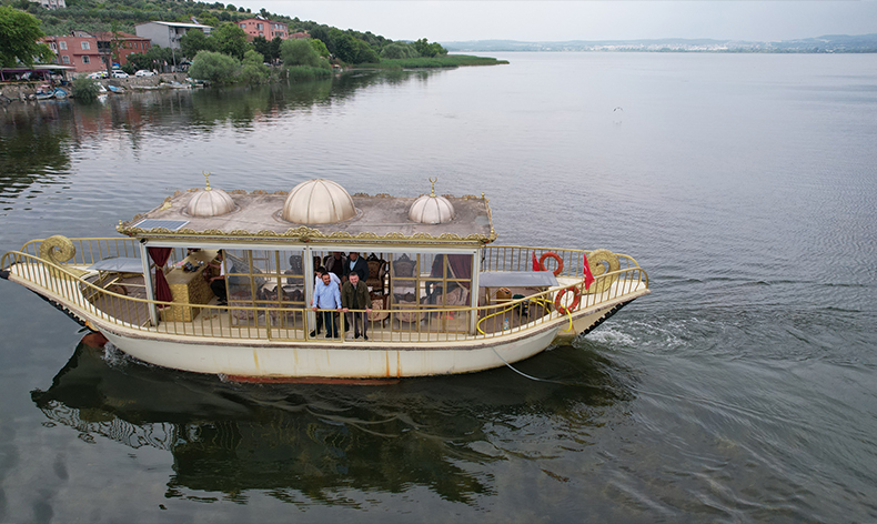 İstanbul Haliç’ten yola çıkan 10 tonluk tekne, tam 70 yıl önceki gibi Bursa’nın 2600 yıllık geçmişi bulunan Uluabat Gölü kenarındaki Gölyazı’ya kullanılmayan kanallardan yüzerek getirildi.