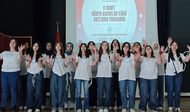 Bursa İl Millî Eğitim Müdürlüğü 8 Mart Dünya Kadınlar Günü Kutlama Programı, Zübeyde Hanım Kız Mesleki ve Teknik Anadolu Lisesi öğrencileri tarafından gerçekleştirildi.