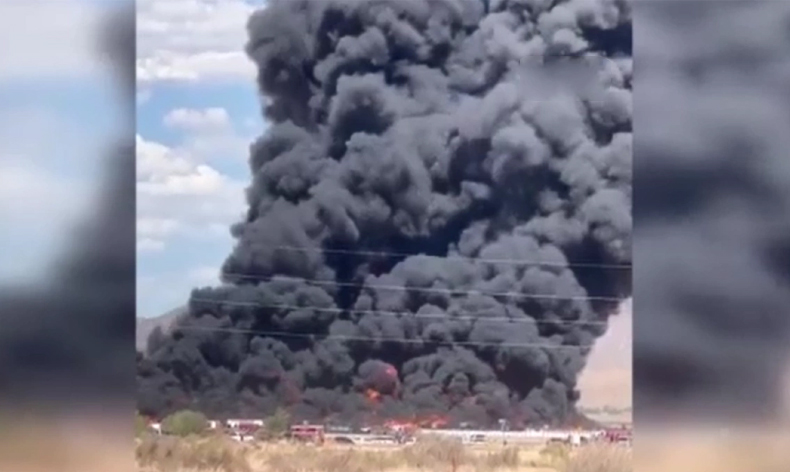 ABD’nin New Mexico eyaletindeki bir plastik geri dönüşüm fabrikası alev alev yandı.