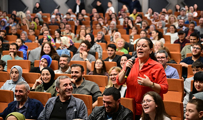 Renkli performansları ve esprili sohbetleriyle izleyicilere unutulmaz bir akşam yaşatan sanatçılar, Barış Manço Kültür Merkezi’ni dolduran kalabalığı kahkahaya boğdu.