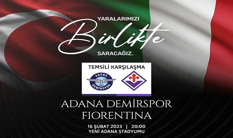 Adana Demirspor, depremzedelere destek olmak için İtaya Serie A takımlarından Fiorentina ile temsili bir karşılaşma yapacak. Fiziki herhangi bir müsabaka oynanmayacak olup, 33 bin bilet satışa çıkacak ve buradan elde edilen gelir AFAD’a gönderilecek.