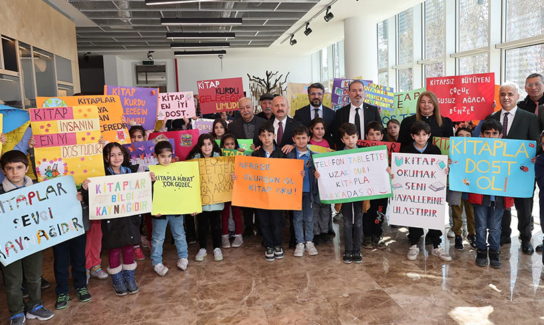 Kitapların ve okumanın önemine dikkat çekmek amacıyla ellerinde döviz taşıyan minik çocuklarla sohbet eden Vali Osman Varol, kütüphaneyi gezerek yeni sergilenen kitapları inceledi.