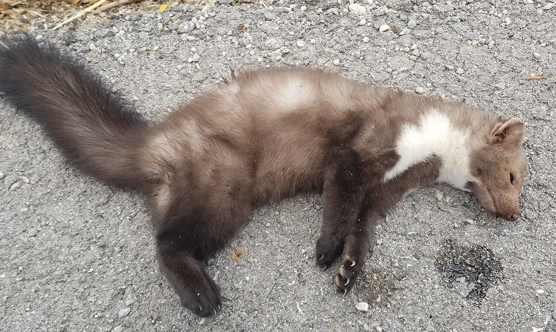 Türkiye’de genellikle yaz dönemlerinde ortaya çıkan ve nesli tükenmekte olan hayvanlar kategorisinde bulunan alaca sansar, Erzincan’da telef oldu.