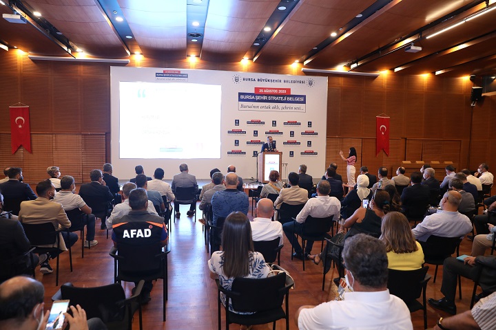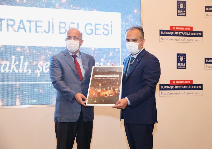 Büyükşehir Belediyesi tarafından ‘şehrin sıkıntılardan arındırılarak mevcut potansiyeliyle birlikte geleceğe taşınması için’ planlanan Bursa Şehir Strateji Belgesi, Büyükşehir Belediye Başkanı Alinur Aktaş tarafından Merinos Atatürk Kongre ve Kültür Merkezi’nde (Merinos AKKM) gerçekleştirilen basın toplantısıyla birlikte kamuoyuna tanıtıldı. Toplantıya, AK Parti İl Başkanı Ayhan Salman da katıldı.