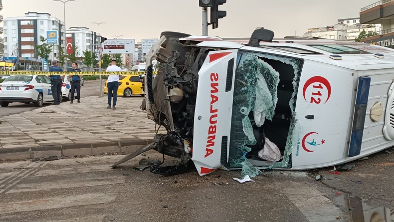 Gaziantep’te ambulans, kavşakta bir araçla çarpışarak devrildi. Kazada 3’ü sağlık personeli toplam 4 kişi yaralandı.