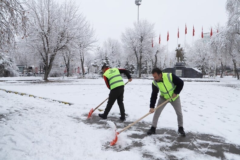 Ardahan’da etkili olan kar yağışı sonrası kent beyaza büründü. Ardahan Belediyesi Temizlik İşleri Müdürlüğüne bağlı ekipler sabahın erken saatlerinden itibaren işe koyularak kaldırımlardaki karları küredi.