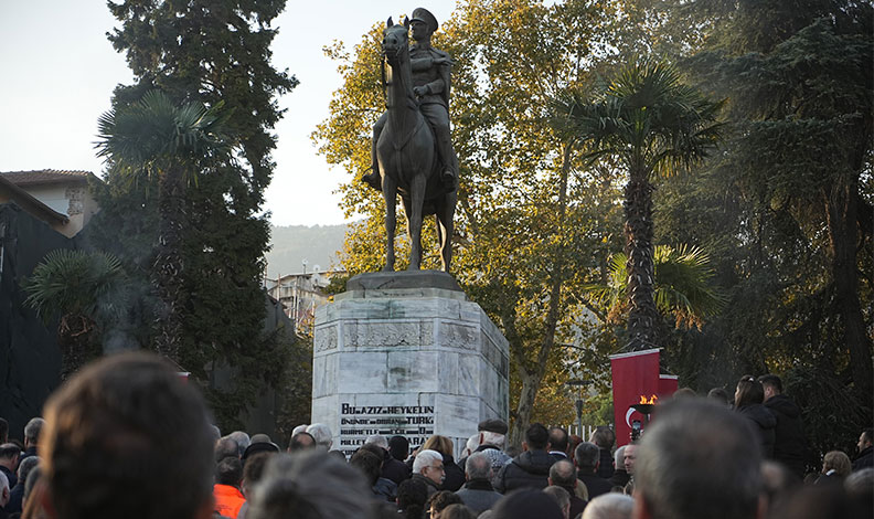 10 Kasım programları çerçevesinde Bursa Valiliği tarafından ilk olarak çelenk sunma töreni gerçekleştirildi. Vali Erol Ayyıldız, Bursa Büyükşehir Belediyesi Başkanı Mustafa Bozbey, Bursa Garnizon Komutanı Tuğgeneral Birol Arslan Atatürk heykeline çelenk sundu. Atatürk’ün hayata gözlerini yumduğu 09.05 geçe sirenler çalmaya başlamasıyla 2 dakikalık saygı duruşunda bulunuldu.