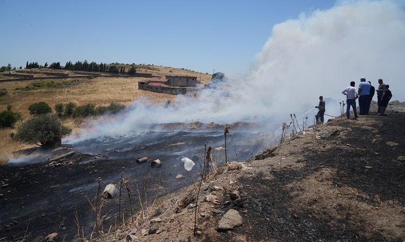 Edinilen bilgiye göre, Ayvalık’ta çöplük yakınlarında başlayan yangın poyrazın etkisiyle makilik alana sıçradı. Kısa sürede tutuşan otlar yüzünden geniş bir alana yayılan alevler, ormanlık alanı tehdit etmeye başladı. Sarımsaklı Plajı’nın bulunduğu bölgeye doğru ilerleyen yangına havadan Orman Bakanlığı’na ait 4 uçak ve 2 helikopter ile karadan ise 5 arazöz 2 su ikmal aracı, 2 ilk müdahale aracı, iş makineleri ve 60 personel ile müdahale edilirken ot yangını ormanlık alana sıçramadan kontrol altına alındı. İş makineleriyle önü kesilen yangın alanında soğutma çalışmaları yapılıyor.