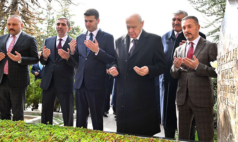 MHP Genel Başkanı Devlet Bahçeli, MHP’nin kurucu Genel Başkanı Alparslan Türkeş’in Beştepe’deki anıt mezarını ziyaret etti.