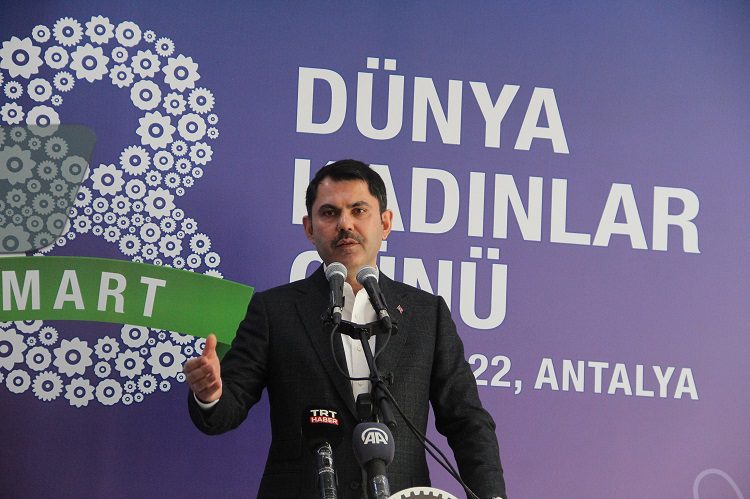 Bakan Kurum, Antalya’nın Manavgat ilçesinde bir otelde düzenlenen Çölleşme ve Erozyonla Mücadele Genel Müdürlüğü ve Türkiye İşçi Sendikaları Konfederasyonu arasında iş birliği protokolü imza törenine katıldı. Burada konuşan Bakan Kurum, tüm kadınların 8 Mart Dünya Kadınlar Günü’nü gönülden kutladığını belirtti.