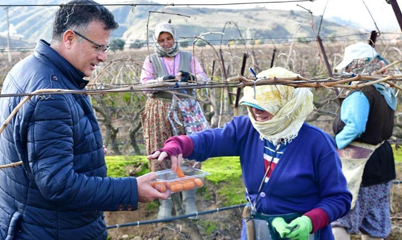 Alaşehir Belediye Başkanı Ahmet Öküzcüoğlu, tarım arazileri ve bağlarda çalışan işçileri çalışma alanlarında ziyaret etti.