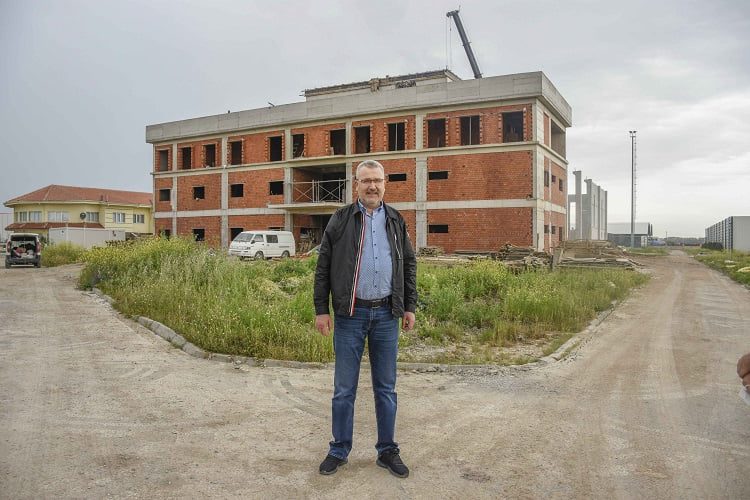 Ali Özkan, “Öğretmenler Parkı bünyesinde spor kompleksi olarak belirlediğimiz alandayız.Parkımızın toplam yüz ölçümü 250.000 metrekare ve biz buraya çeşitli spor tesisleri yapıyoruz. Şuandada inşaatı devam eden çok amaçlı spor salonu Gençlik ve Spor Bakanlığımızın destekleriyle Karacabey Belediyesi’nin katkılarıyla müştereken yapılan bir hizmet. Spor yatırımlarını çok önemsiyoruz.Buradan önce Gençlik Merkezinin inşaatındaydık. Gençlerimiz bizim geleceğimiz, gençlerimizi kötü alışkanlıklardan muhafaza edebilmek, eğitim hayatlarına katkı sağlayabilmek, onların moral ve motivasyonlarını güçlendirebilmek için bu tür tesislere, bu tür faaliyetlere ihtiyaç olduğunu düşünüyoruz. Karacabey Belediyesi olarak sınırları sonuna kadar zorlayıp, bu hizmetlerimizi gençlerimizin ayağına getirme çalışmalarına son sür’atle devam ediyoruz. Karacabey’de biz göreve gelmeden önce yaklaşık 180-300 olan lisanslı sporcu sayısı,spora ve sporcuya yönelik bu ataklarımız sayesinde 6000,7000’lere çıktı. Karacabey Belediyespor 2. Ligde başarıyla mücadele ediyor. Voleybolda 2. Ligde takımımız var. Basketbol, atletizm, yüzme, güreş alanında çalışmalarımız devam ediyor. Çocuklarımıza, gençlerimize, bütün hemşerilerimize spor yaptırmak istiyoruz. İşte doya doya spor yapabilecekleri salonumuzun inşaatı devam etmekte,inşallah en kısa zamanda bunu Karacabeyli vatandaşlarımızın hizmetine sunmaktan büyük mutluluk duyacağı” dedi.