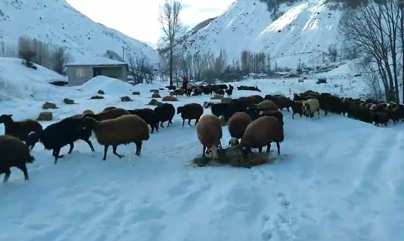 Baba mesleği olan besiciliği yıllardır sürdüren 4 çocuk babası Fazlı Gürgen (44), her gün erken saatlerde uyanarak zorlu mesaiye başlıyor. Yaklaşık 100 adet küçükbaş hayvanı olan Gürgen, günde birkaç kez hayvanlarını kar üstünde otlatmak için yaz aylarında biçtiği otları kızağa yüklüyor ve 1,5 kilometre boyunca taşımasını yapıyor.