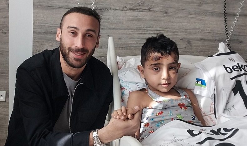 Beşiktaş’ın golcü futbolcusu Cenk Tosun, enkazdan kurtarıldıktan sonra kendisinden imzalı formasını isteyen Cavit ile tedavi gördüğü hastanede buluştu.