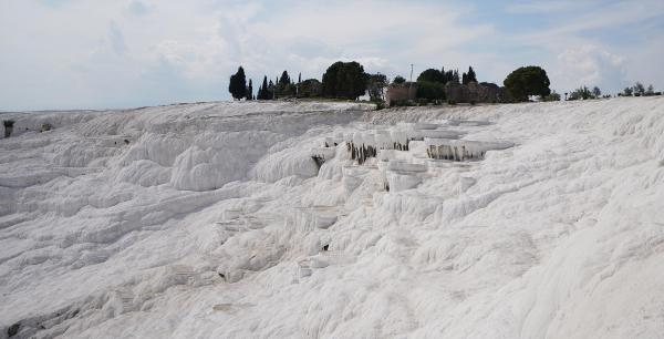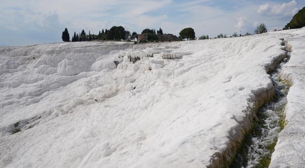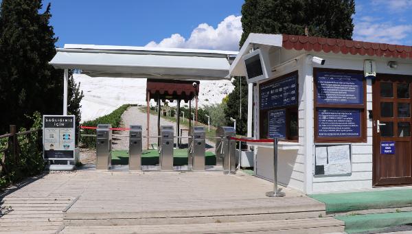 Ziyaretlerin kapatılmasıyla beyazlığının daha fazla ortaya çıktığı travertenler tarihinde ilk kez bu kadar boş kaldı. Beyaz cennet olarak adlandırılan Pamukkale’deki travertenlere 74 gündür ayak basılmadı. Dünyanın dört bir yanından ziyaretçinin geldiği, geçen yıl 2 milyon 580 bin 245 kişinin ziyaret etmesiyle turist sayısında rekor kırılan Pamukkale’de, sessizlik hakim oldu.