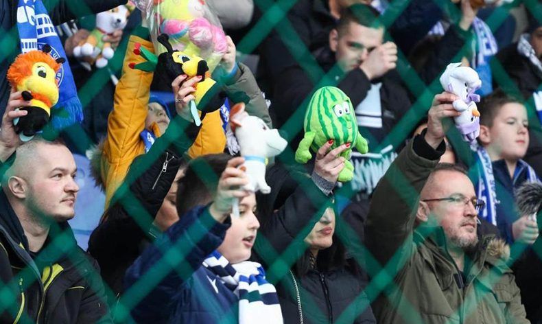 Pomozi.ba insani yardım kuruluşu tarafındanorganize edilen oyuncak toplama kampanyasında, maç öncesi yüzlerce taraftar beraberinde getirdikleri oyuncakları sahaya gönderdi.