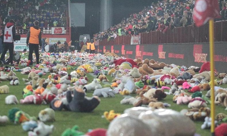 Bosna Hersek’te oynanan Zeljeznicar – Sloboda ve Velez – Borac maçlarında Türkiye’de 6 Şubat tarihinde yaşanan depremlerden etkilenen çocuklar için oyuncak sahaya oyuncaklar atıldı.