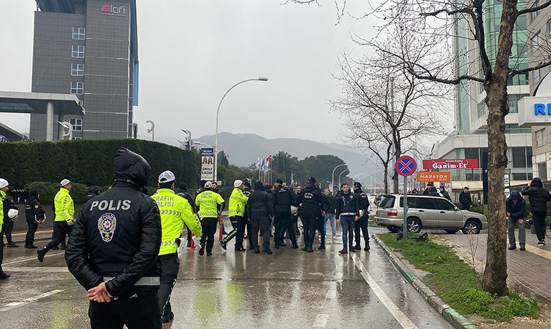TFF 2. Lig Beyaz Grup’ta 25. haftasında saat 14.00’te oynanacak olan Bursaspor-Amedspor maçı öncesi polis ekipleri aldığı geniş güvenlik önlemleri sayesinde çıkan olaylara izin vermedi.