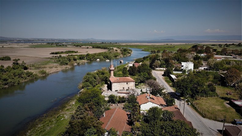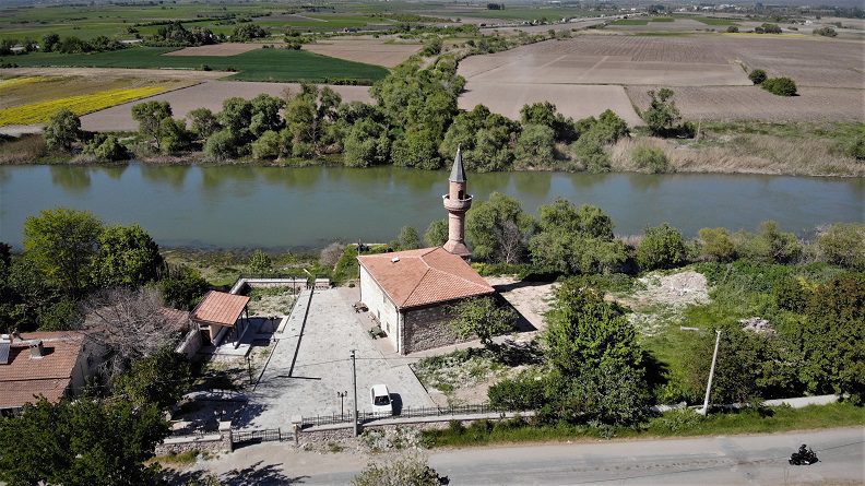 Bursa’da Uluabat Gölü kenarındaki tarihi cami ve manzarası görenleri kendine hayran bırakıyor.