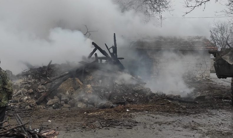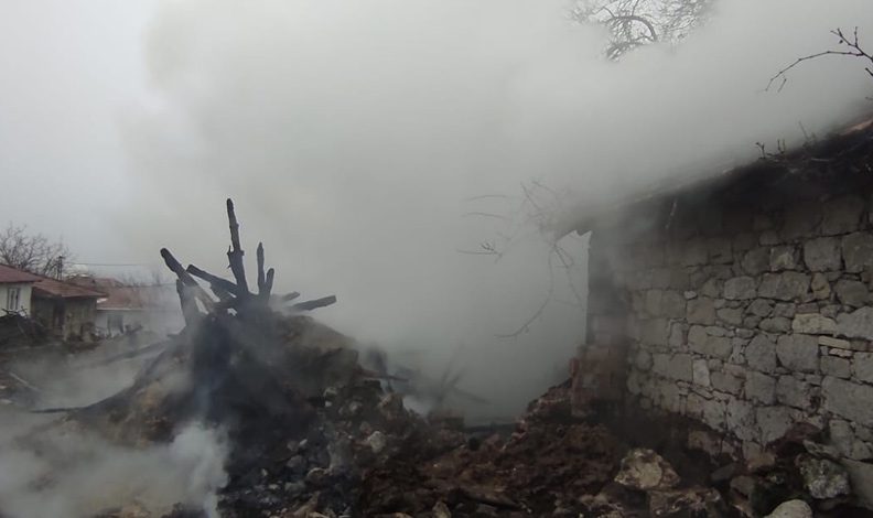Yangında ahırda bulunan bir büyükbaş ve 8 küçükbaş hayvan yanarak telef oldu.