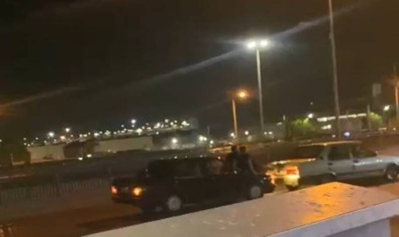 Arkadaki aracın motor kaputu üzerine oturan iki genç, ayaklarını uzatıp öndeki arıza yapan otomobile dayadılar. Gençlerin işaret vermesi üzerine arkadaki araç hareket edip öndeki aracı itmeye başladı.