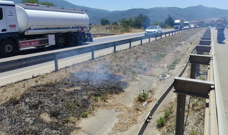 Bursa-Yalova kara yolu üzerinde refüjde yangın çıktı. Sigara izmaritinden çıktığı tahmin edilen yangın, ekiplerin müdahalesi ile söndürüldü.