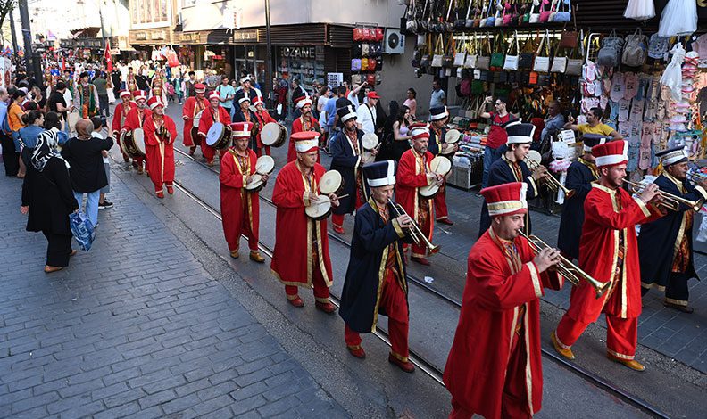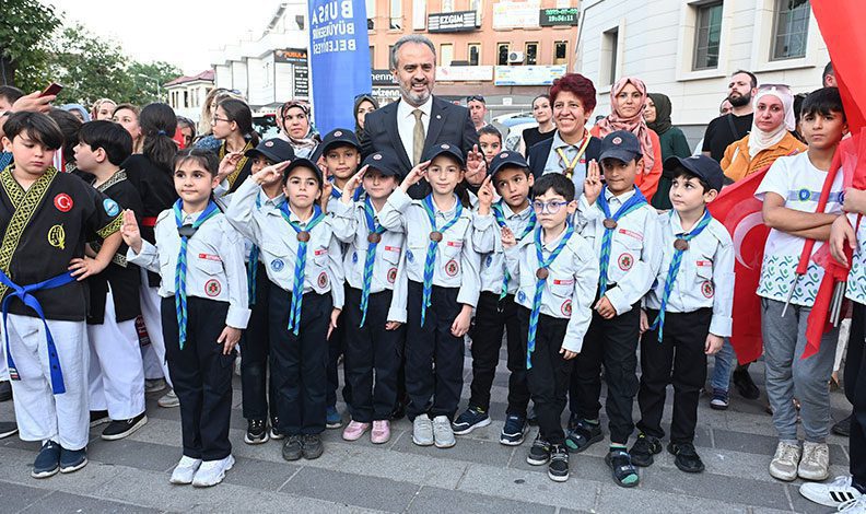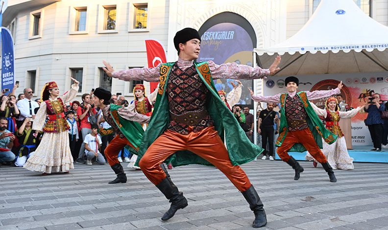 Büyükşehir Belediye Başkanı Alinur Aktaş, Bursa Milletvekili Ahmet Kılıç, Keles Belediye Başkanı Mehmet Keskin, Orhaneli Belediye Başkanı Ali Aykurt, AK Parti İl Başkanı Davut Gürkan ve sivil toplum kuruluşlarının temsilcilerinden oluşan protokol üyeleri, Cumhuriyet Caddesi girişinden Fomara 15 Temmuz Demokrasi Meydanı’na kadar yürüyerek halkı selamladı. Protokol üyelerinin yürüyüşüne Osmanlı savaş müzikleriyle mehter takımı ve rahvan atları derneği ekipleri de eşlik etti. Yürüyüş sonunda Kazakistan’dan gelen misafirler, geleneksel halk danslarını sergiledi. Birbirinden farklı figürler sergileyen ekip, Bursalılardan yoğun ilgi gördü.