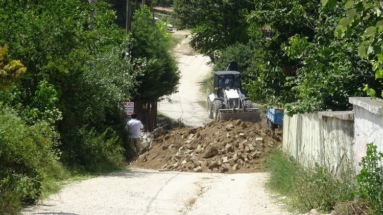 Toprak ve molozlarla kapatılan yol, yer sahibi ile anlaşılarak tekrar açıldı.
