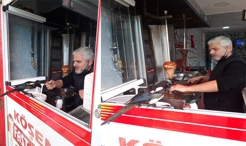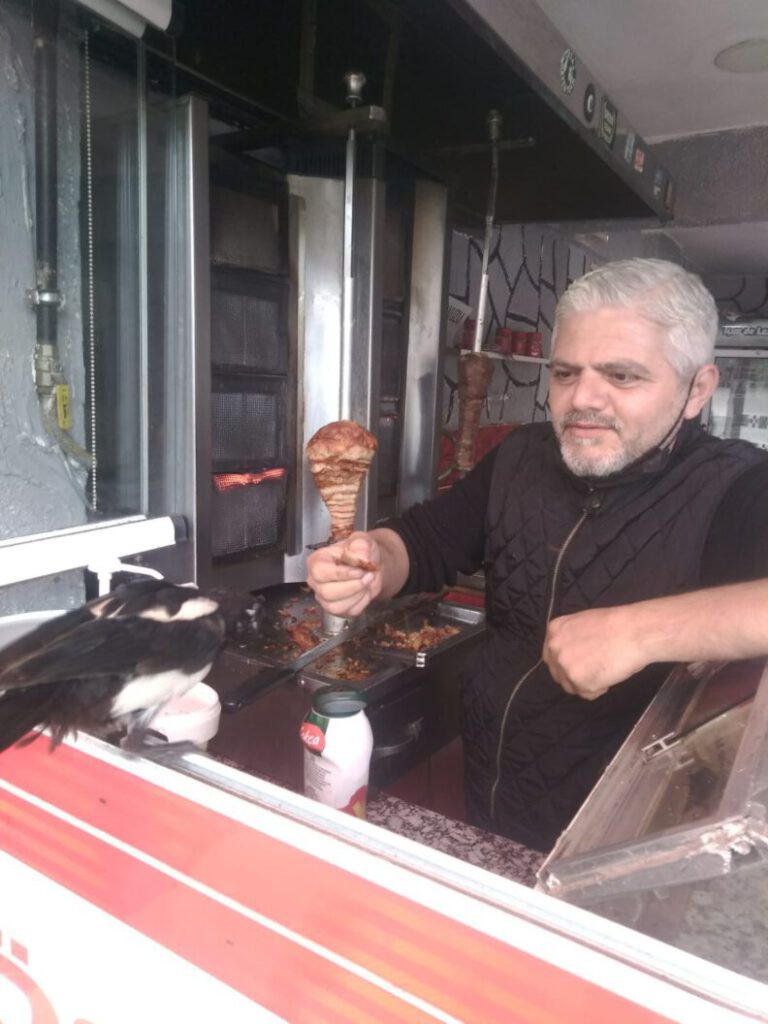 Saksağan, dükkana gelen müşterilerin üzerine konarak, kendine döner ısmarlatana kadar ayrılmıyor. Mahallenin maskotu olan kuş, herkese kendine döner ısmarlatıyor. Her gün döner yemeye gelen saksağanın hatırı sayılır bir hayran kitlesi bulunuyor.