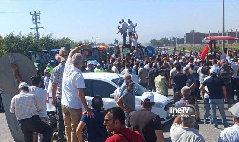 İzmir yolunda toplanan yüzlerce çiftçi, hem Bursa yönünü hem de İzmir yönünü trafiğe kapattı. Tepkilerini gösteren çiftçiler, “hükümet istifa” sloganları attı.