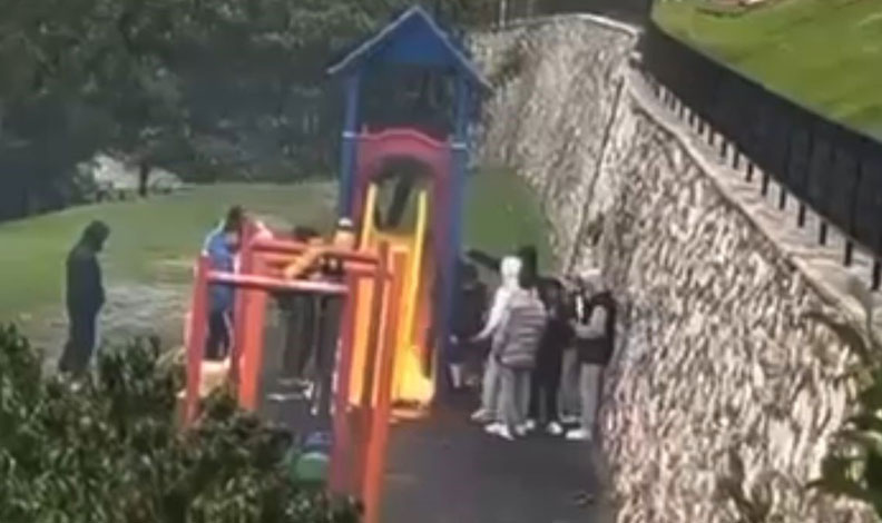 Kimliği belirlenemeyen şahıslar, parktaki kaydırağın etrafında bir araya gelip sohbet etmeye başladı. Sohbete dalan gençler bir süre sonra çocuklara ait olan kaydırağı yaktı. Duyarsız gençlerin o anları kameraya yansırken, mahalleli ise duruma isyan etti.