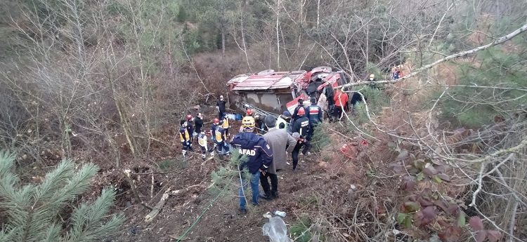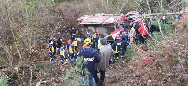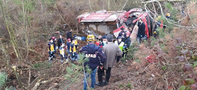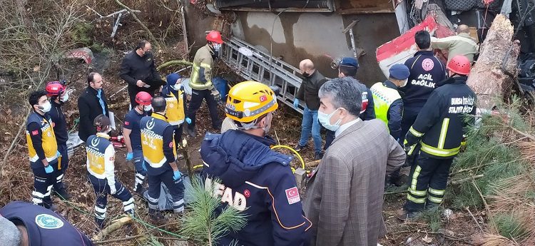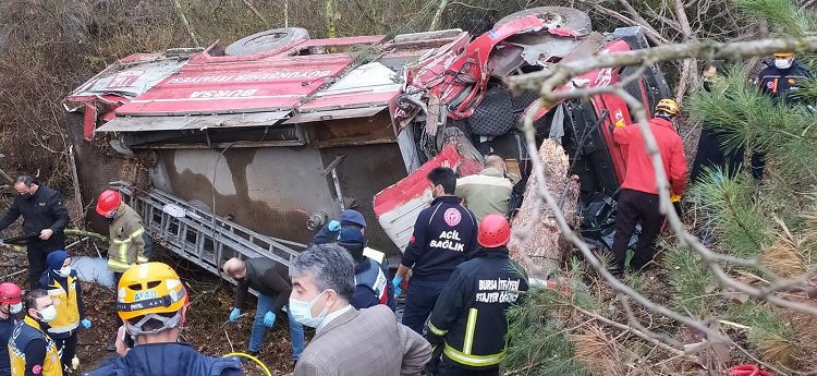Bursa’da trafik kazası ihbarına giden itfaiye ekibi yolda kaza yaptı. Şarampole devrilen itfaiye aracı içerisindeki 4 itfaiye personeli hayatını kaybetti.