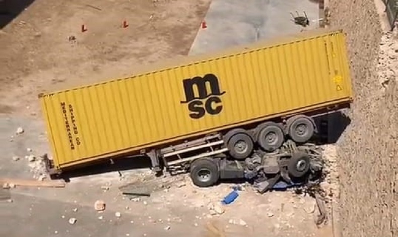 Bursa’nın İnegöl ilçesinde freni boşalan tır, istinat duvarından mobilya fabrikasının bahçesine uçtu.