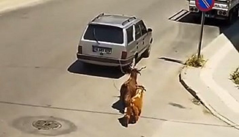 Bursa’nın Gürsu ilçesinde bir kişi sahibi olduğu keçileri götürmek istediği yere aracına bağladığı iple götürdü. Sıcak havada kilometrelerce aracın peşinden koşan keçilerin o anlarına şahit olalar cep telefonlarıyla görüntü aldı. Sosyal medyada paylaşılan görüntülerde hayvanlara eziyet eden kişiye büyük tepki gösterildi.
