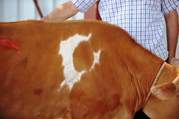 Bursa’da gövdesinde ay yıldız bulunan kurbanlık satıldı