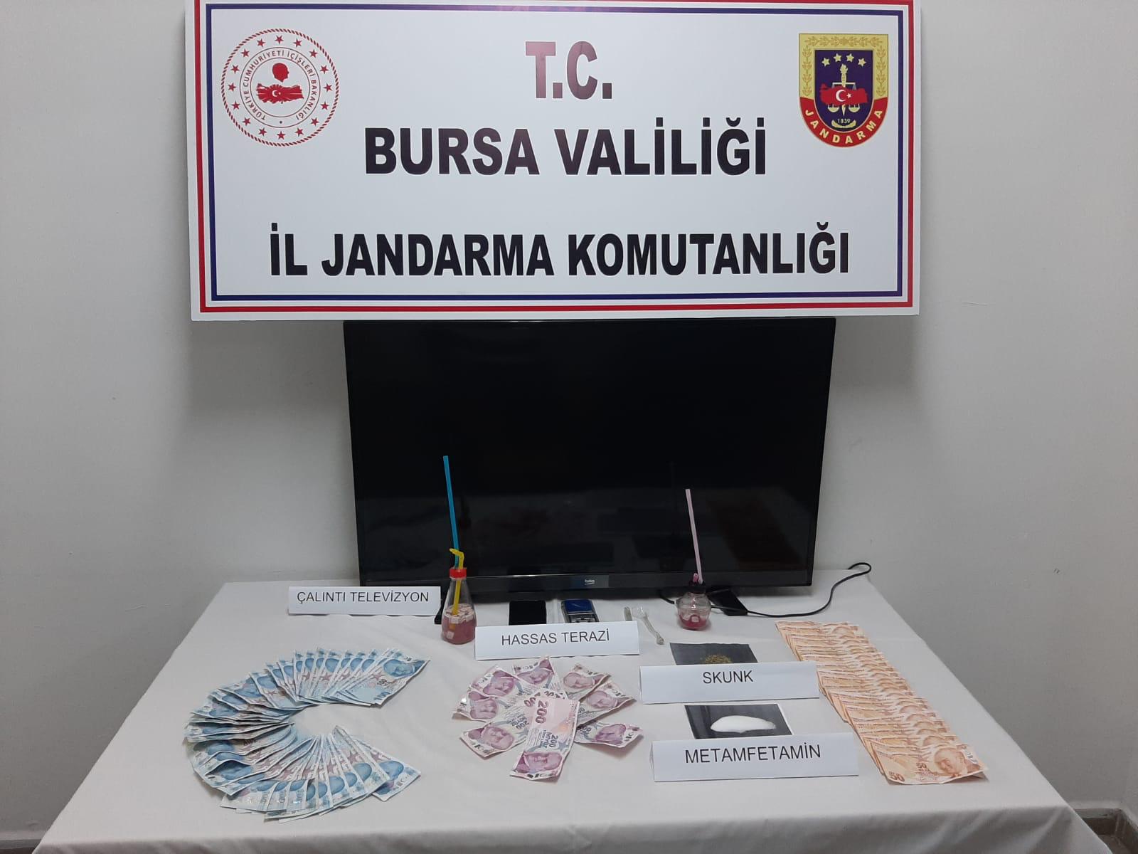 Evde yapılan aramada uyuşturucu yapımında kullanılan 2 adet cam aparat, 2 adet uyuşturucu içmekte kullanılan plastik aparat,10 gram uyuşturucu madde, evin içinde gizlenmiş noktalarda ele geçirildi.
