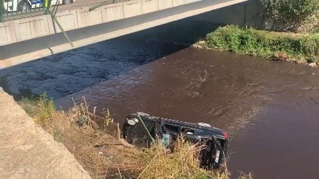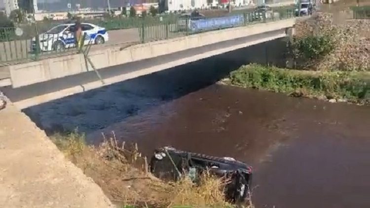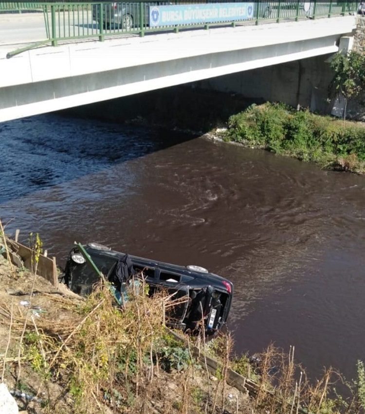 Bursa’nın Osmangazi ilçesi Yeniceabat Mahallesi’nde iddiaya göre köprü üzerinden geçerken direksiyon hakimiyetini kaybeden otomobilin sürücüsü köprünün demir parmaklıklarını kırarak dereye uçtu.