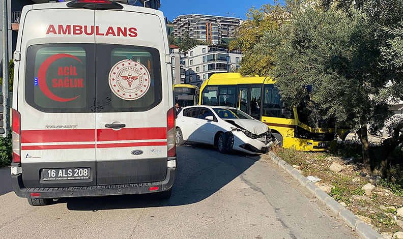 Mudanya ilçesi Siteler Mahallesi’nde saat 10.15’te meydana gelen trafik kazası, bölgede paniğe yol açtı. Bilim Caddesi’nden ilerleyen 2GH hattına bağlı 16 ATJ plakalı Burulaş otobüsü, Efeler Caddesi yönünden gelen 16 UAH plakalı otomobille çarpıştı. Çarpışmanın şiddetiyle her iki araç savrularak yol kenarında güçlükle durabildi.