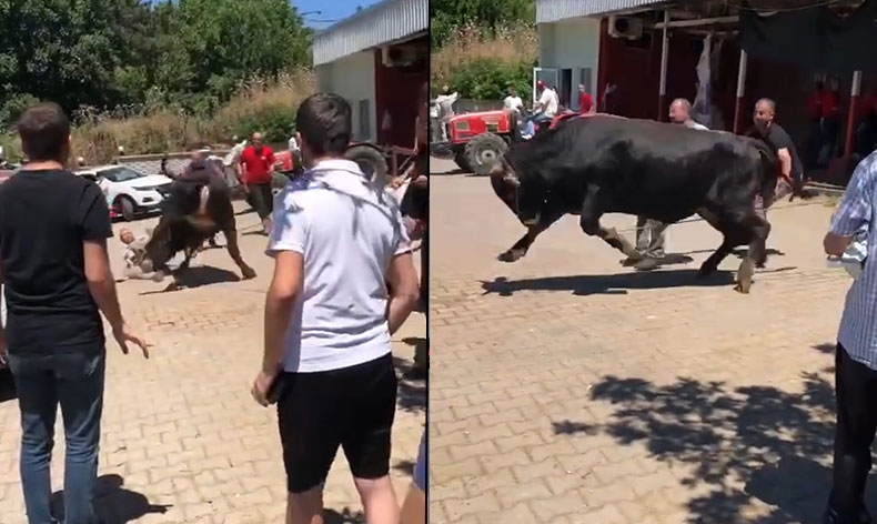 Bursa’da kesim sırasında sahiplerinin elinden kurtulan boğa ortalığı birbirine kattı.
