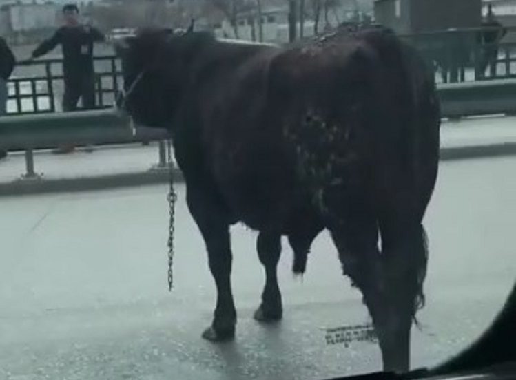 Sahibinin elinden kaçan boğa, Bursa’nın en işlek caddelerinden biri olan Bursa-Ankara yoluna çıktı. Trafiği birbirine katan boğayı yakalamak için sahibinin yanı sıra, jandarma, polis ve belediye ekipleri de seferber oldu. Araçların arasından ilerleyen boğa, kimi zaman yorgunluktan durmak zorunda kaldı.