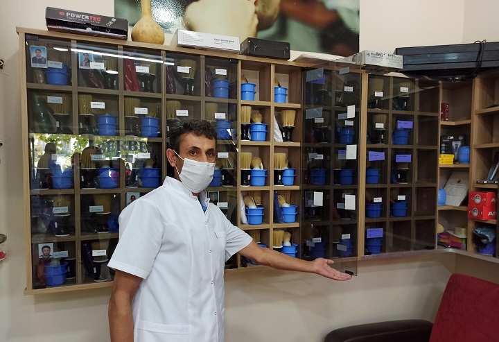 Müşterilerin sağlığı için böyle bir uygulama geliştirdiğini belirten berber İsrafil Yıldız, “Bu uygulama bizim için de müşterilerimiz için de verimli oldu. Saç ve sakal tıraş malzemelerini kişiye özel hazırladık ve bunun için özel dolap yaptırdım. Daimi müşterilerimizin isimlerini ve fotoğraflarını dolaplardaki haznelerin üzerine yapıştırarak malzemelerini muhafaza ediyoruz. Bu şekilde güzel bir ortam oluşturduk inşallah devamı gelir. Şu anda 55 müşterinin malzemesi bu şekilde hazır. 55 tane müşteri için de yine sipariş verdim. Müşterilerimizin ve meslektaşlarımızın koronavirüs ile mücadelede hassas davranmalarını rica ediyoruz” ifadelerini kullandı.