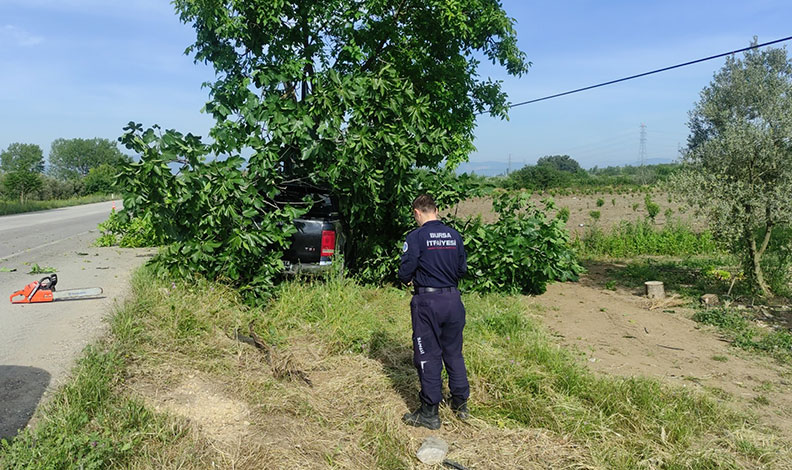 Bursa’da Orhangazi-İznik Karayolu Üreğil altı mevkiinde seyir halindeki kamyonet, kontrolden çıkarak yol kenarındaki ağaca çarptı. Sürücünün yaralandığı kazada kamyonet ise ağaç dalları itfaiye tarafından kesilerek bulunduğu yerden çıkarılabildi.