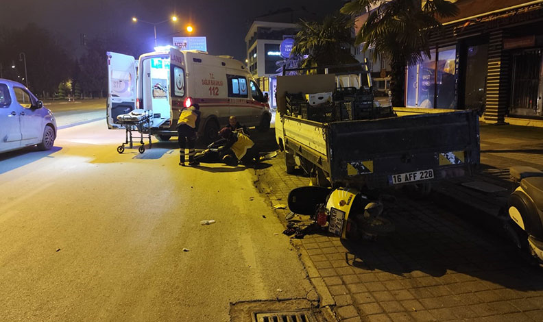 Bursa’da motosiklet sürücüsü park halindeki kamyonete çarptı
