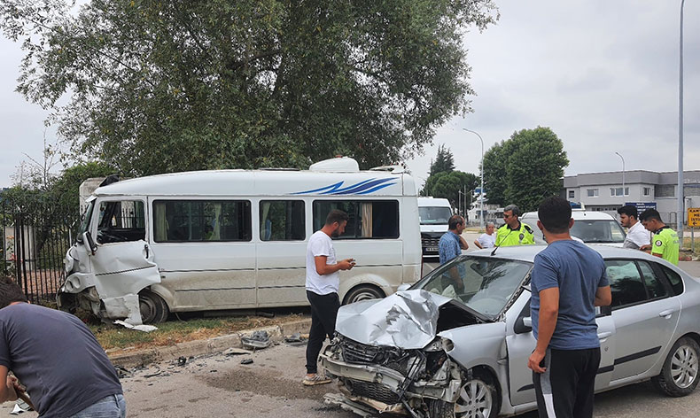 Kaza, Bursa’nın İnegöl ilçesindeki Organize Sanayi Bölgesi 5. Sokakta meydana geldi. Hakan Sokaktan 5. Cadde’ye çıkış yapmakta olan Hacer Y. (27) yönetimindeki otomobil, 5. Cadde üzerinde seyir halinde olan Burak B. (23) yönetimindeki  servis minibüsü ile çarpıştı. Kaza sonucu sürücüler ile otomobildeki yolcu Mert Ö. (21) ile minibüsteki yolcu Hilal A.(27) yaralandı.