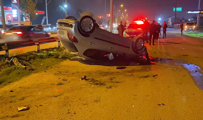 Bursa’dan İnegöl’e seyir halinde olan Gökhan D.(21) yönetimindeki 09 DJ 207 plakalı otomobil, kontrolünden çıkarak takla atıp yan yola devrildi. Ters duran araçtaki sürücü ile yanındaki yolcu Ahmet A. (21) yaralandı.
