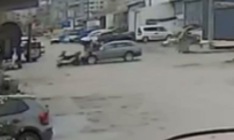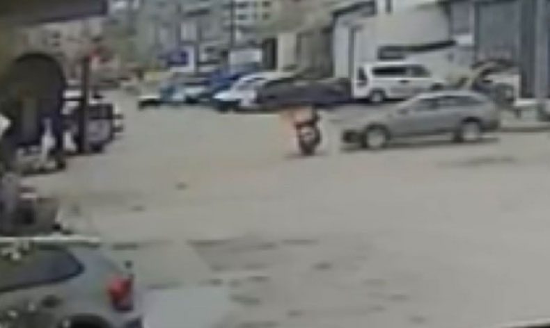 Bursa’da otomobille çarpışan motosikletteki kurye havaya fırladı. Kaza anı bir iş yerinin güvenlik kamerasına saniye saniye yansıdı.