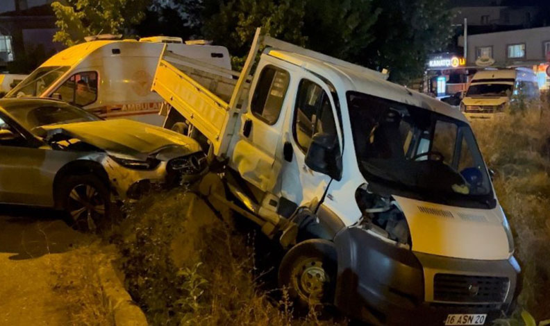 Bursa’da park halindeki kamyonete çarptı: 3 yaralı